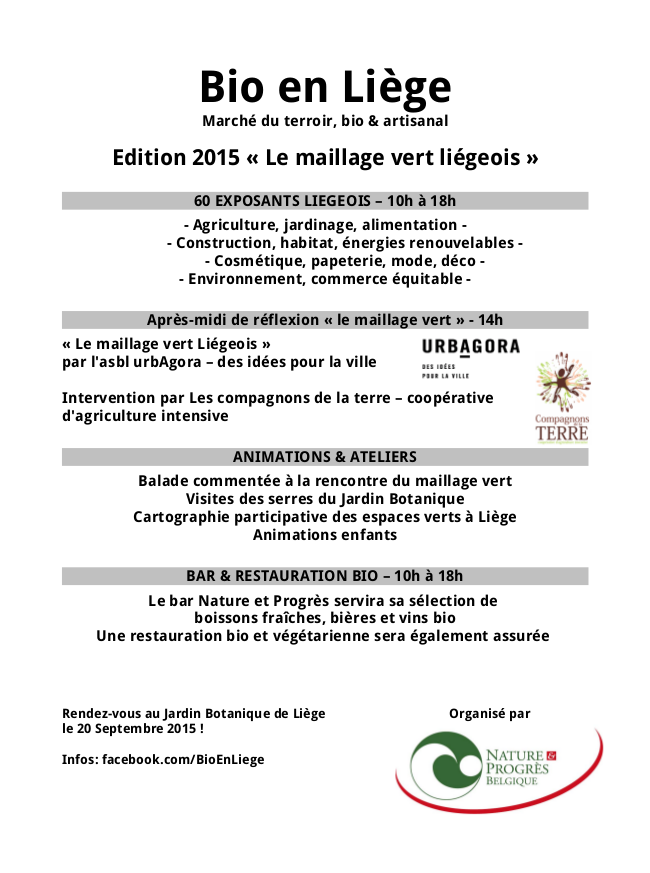 A L’occasion de Bio-en-Liège, le groupe de travail « Maillage vert » d’urbAgora tiendra un atelier de cartographie participative du Maillage Vert liégeois. Bienvenue à tous !
