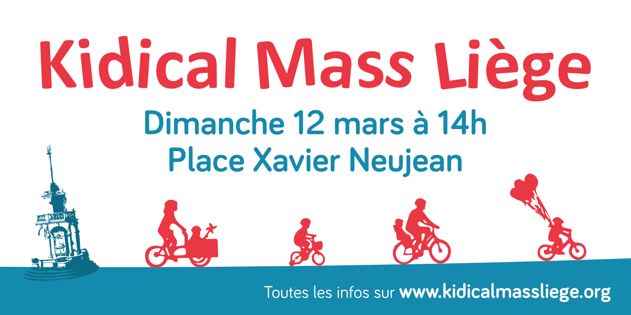 Rendez-vous pour cette troisième édition de la Kidical Mass de Liège place Xavier Neujean à 14h avec vos enfants, vos parents, votre unité scoute, vos amis... sans oublier votre vélo !