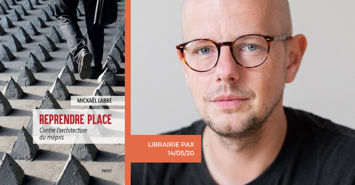 Dans le cadre d’un cycle de réflexions sur l’aménagement des villes, la Librairie Pax et UrbAgora Asbl ont le plaisir de vous inviter, le jeudi 14 mai 2020 à 18h30, à une rencontre avec Mickaël Labbé autour de son dernier ouvrage « Reprendre place ; contre l’architecture du mépris » (paru aux Éditions Payot).