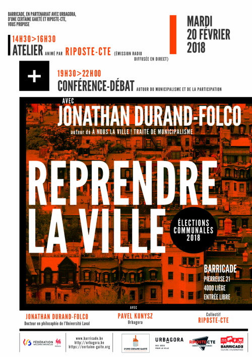 Conférence-débat autour du municipalisme et de la participation. Jonathan Durand-Folco y sera accompagné de Pavel Kunysz (urbAgora).