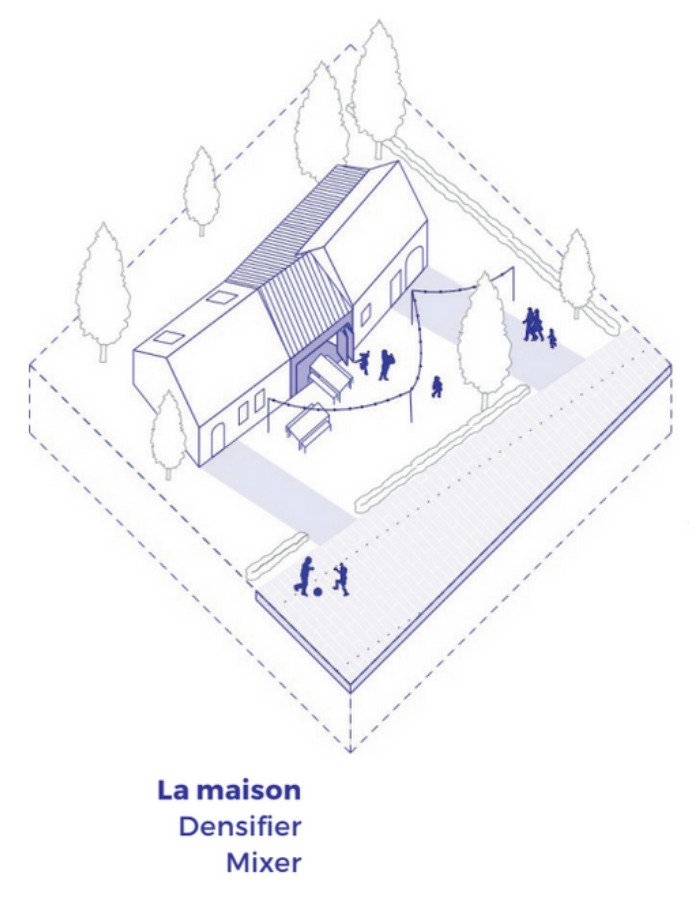 Au gré des transformations de ces prototypes, une sorte d’évidence, d’abord intuitive, s’est progressivement transformée en une posture de projet argumentée. Les pistes d’explorations ne se résument pas dans la transformation d’une seule dimension, elles ne trouvent de sens que dans leur imbrication à de multiples échelles. Autrement dit : les transformations à mettre en œuvre ne s’appliquent pas au seul habitat individuel privé : elles demandent de repenser les alliances et les niveaux d’arrangements spatiaux et sociaux qui pourraient exister dans la périphérie.